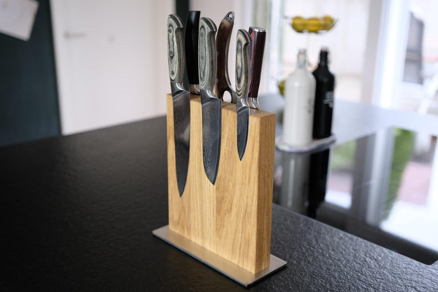Die hochwertigen, handgefertigten Messerblöcke sind nicht nur ein praktischer Ordnungshelfer, sondern ein echtes Design-Statement für deine Küche. Die integrierte Edelstahlbodenplatte sorgt für stabilen Stand und unterstreicht die edle Optik.