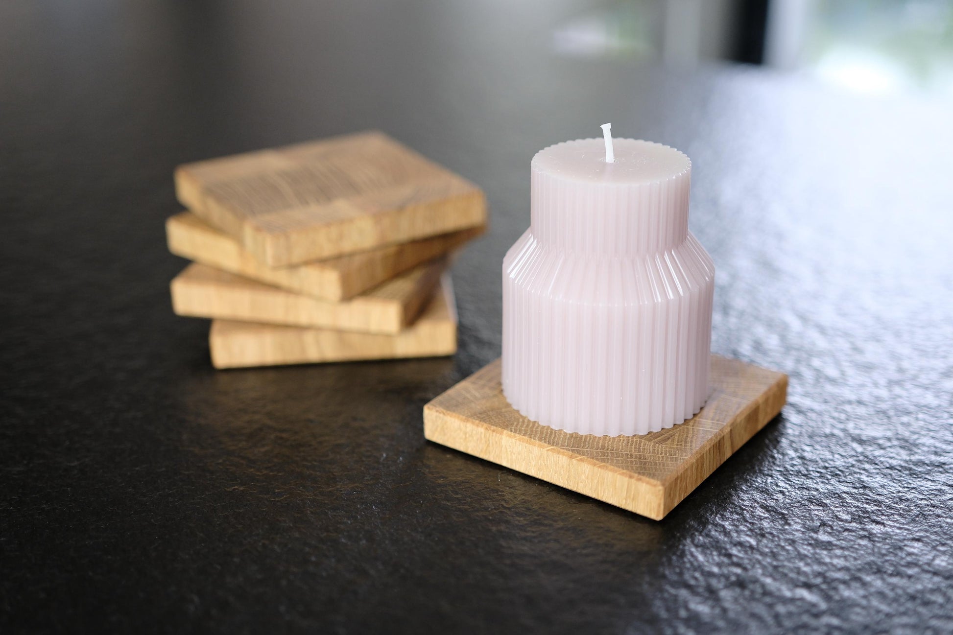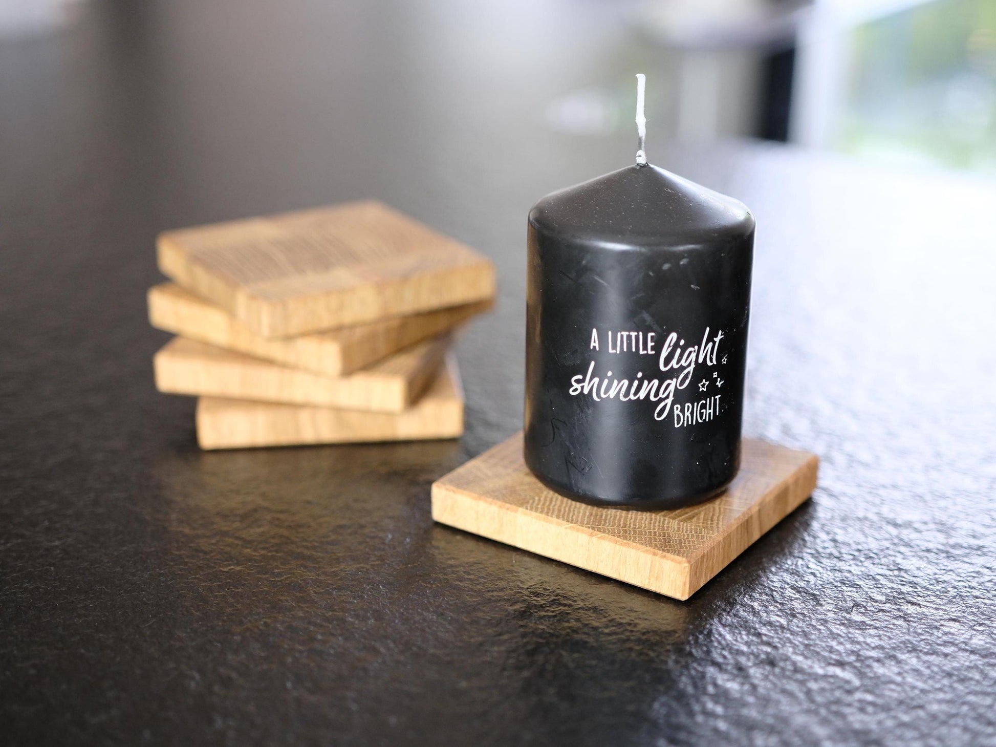Maße: ca. 9 x 9 cm | Stärke: ca. 1,3 cm Material: Massives Eichen Holz (Stirnholz) Hinweis: Dekorationsartikel wie Kerzen oder Glas sind nicht im Lieferumfang enthalten.