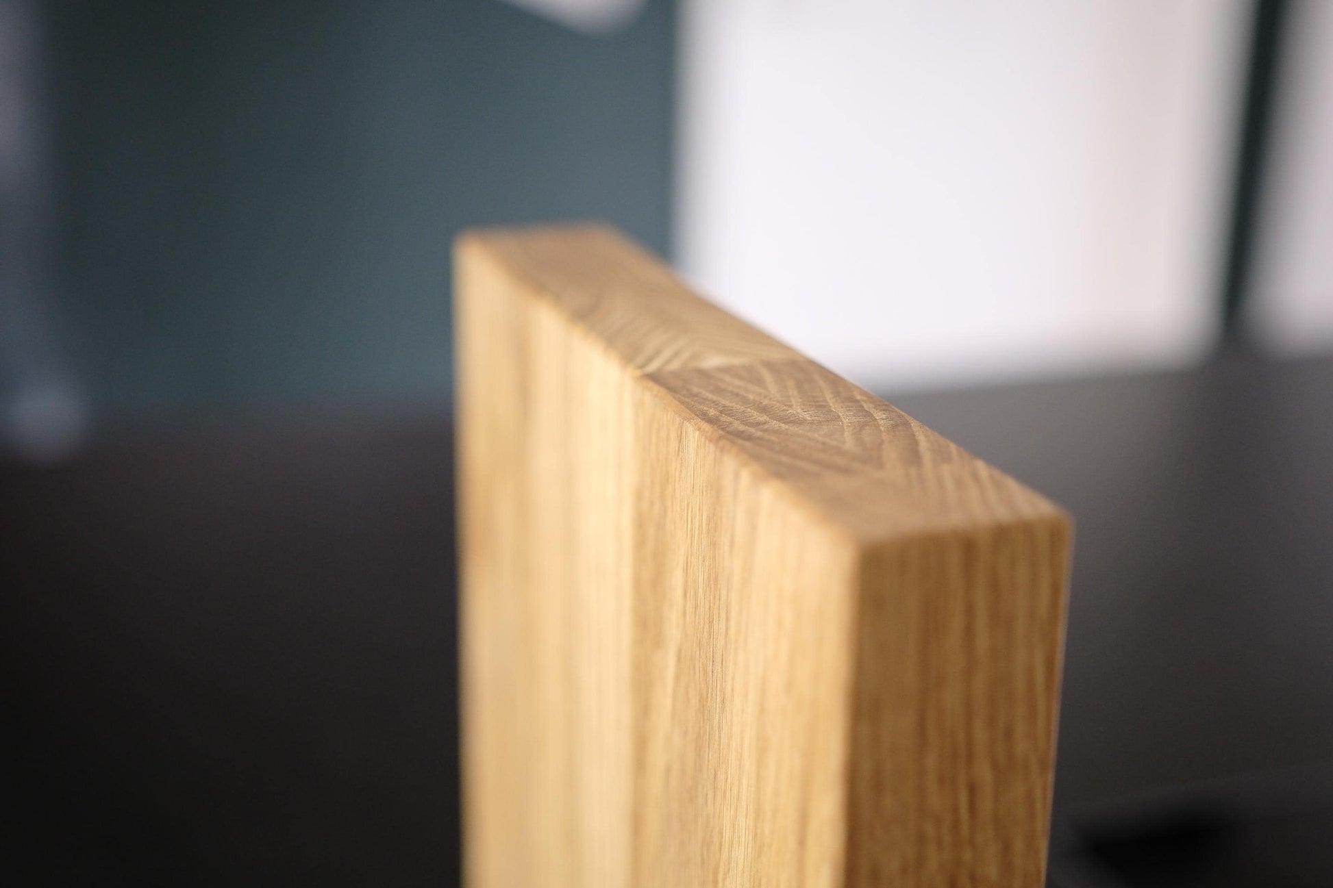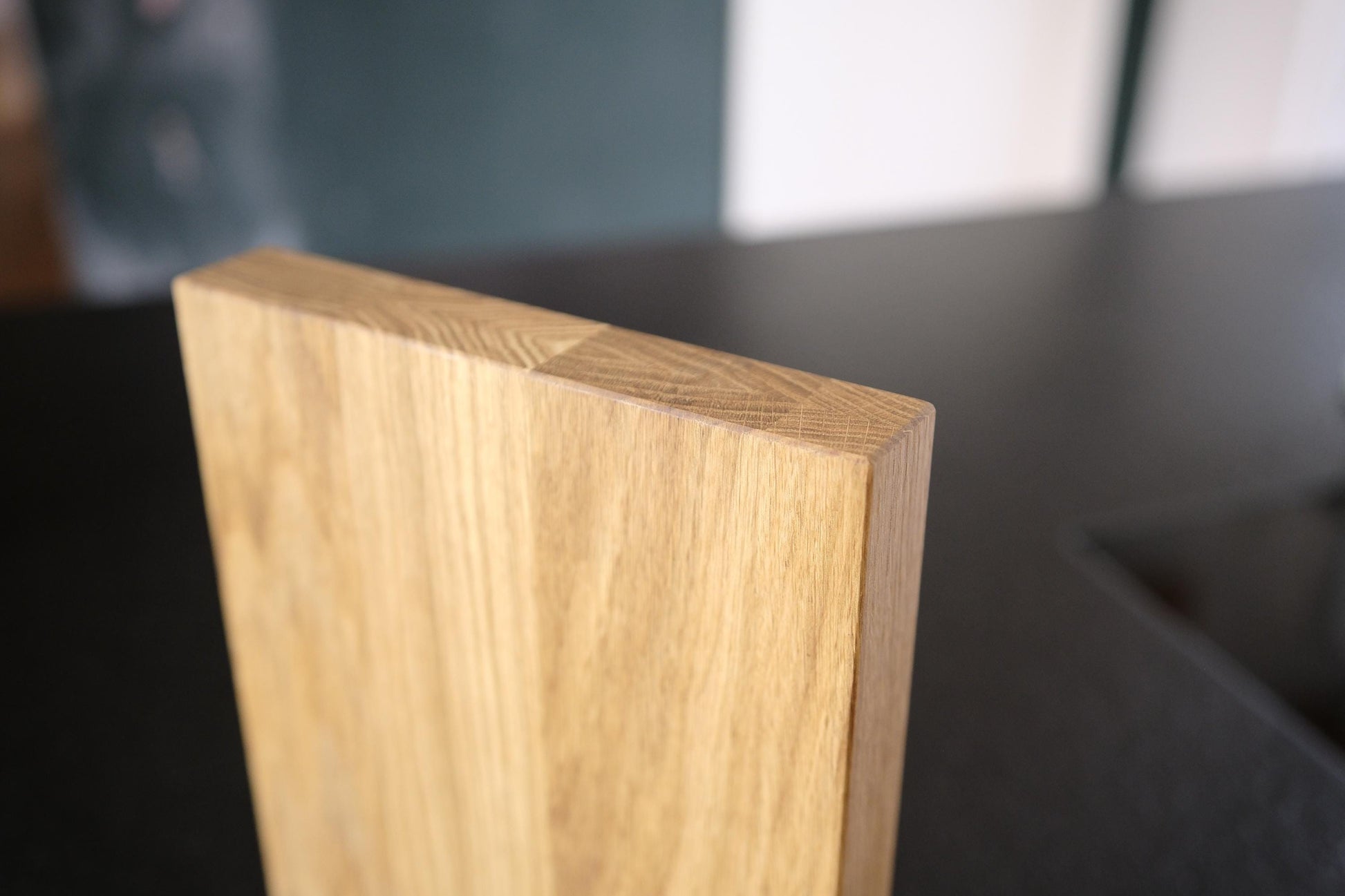 Dieser hochwertige, handgefertigte Messerblock aus massivem Eichenholz ist nicht nur ein praktischer Ordnungshelfer, sondern ein echtes Design-Statement für deine Küche. Die integrierte Edelstahlbodenplatte sorgt für stabilen Stand und unterstreicht die edle Optik.