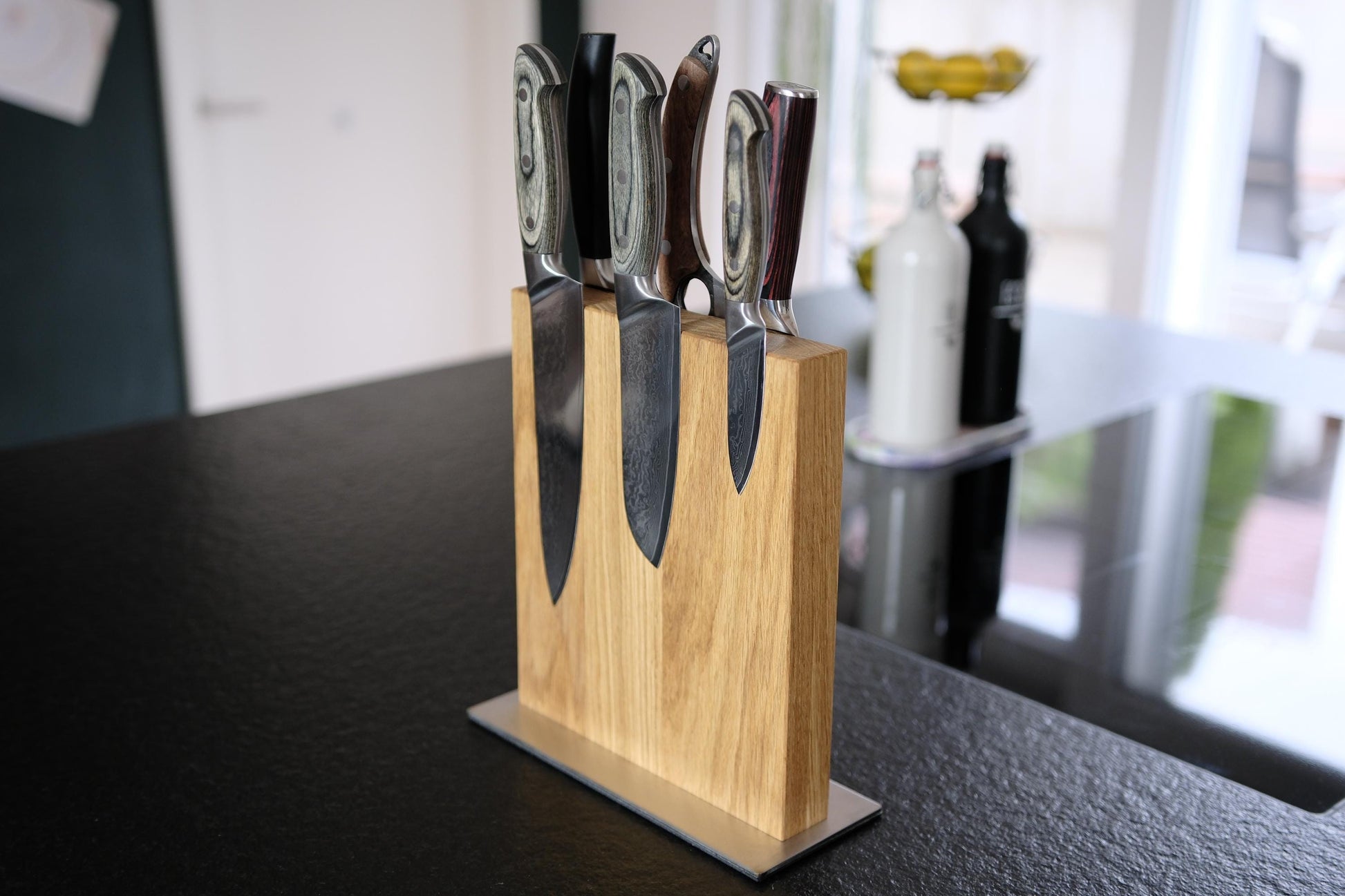 Edler Magnetischer Messerblock aus Eiche – Handgefertigt mit Edelstahlboden
