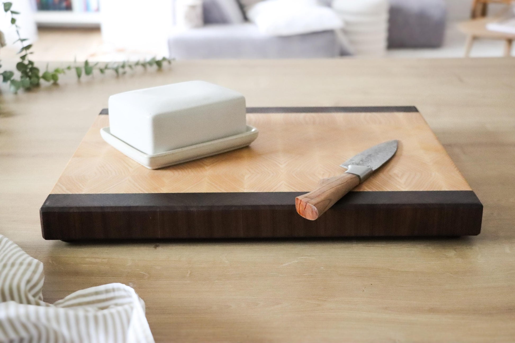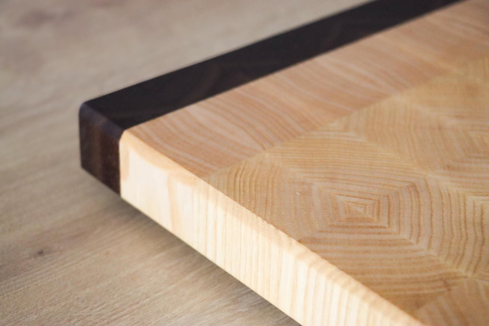 Massives Stirnholz-Schneidebrett Unikat aus Esche und Walnuss – Funktionalität trifft auf zeitlose Eleganz Unser hochwertiges Stirnholz-Schneidebrett aus massiver Esche und Walnuss vereint Langlebigkeit, Ästhetik und Handwerkskunst. Dieses Einzelstück gibt es nur einmal zu Kaufen. Sie erwerben genau dieses Stirnholz-Schneidebrett wie auf den Bildern zu sehen ist