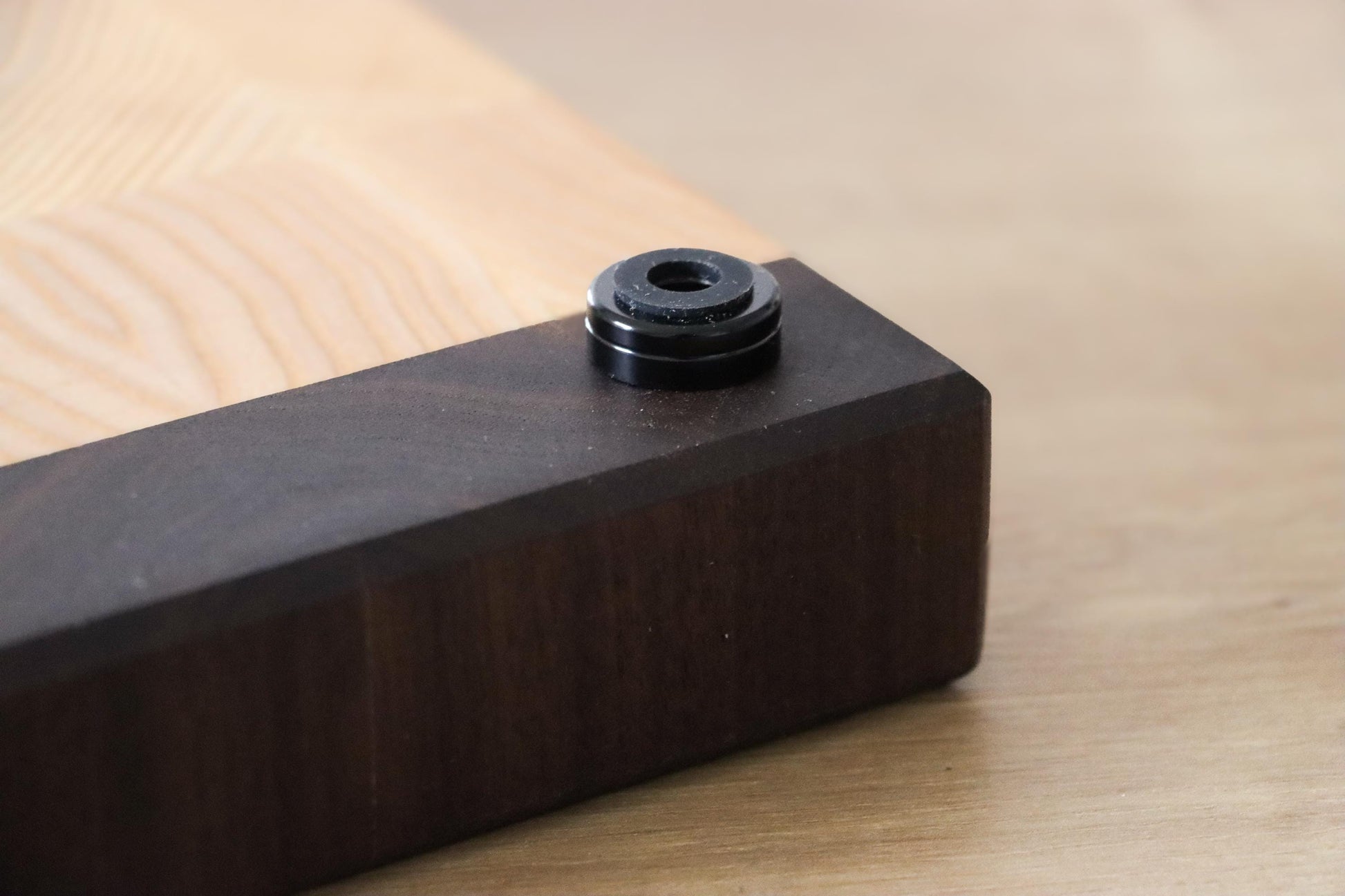 Dieses Unikat hat die Maße : 44 x 34 x 4cm und ist ausgestattet mit CNC gefrästen Aluminium Füße mit Gummi Einlage so dass es Rutschsicher auf der Arbeitsplatte steht.